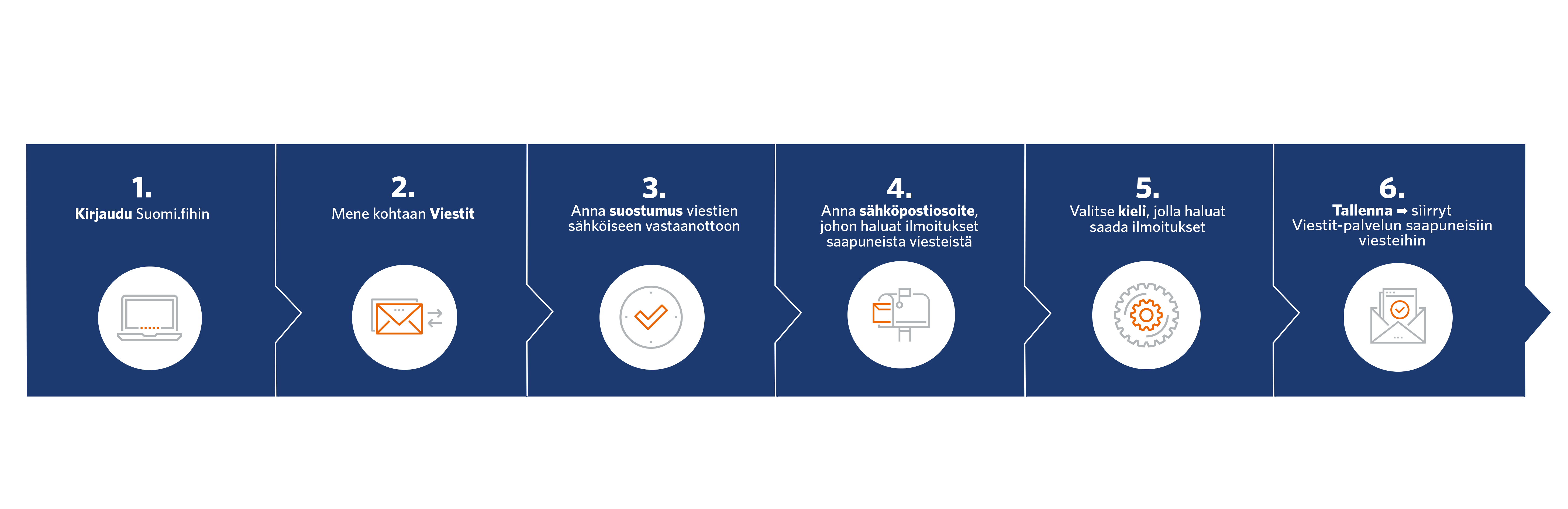 - Suomi.fi-sovellus ja sähköposti-ilmoitukset verkkopalvelusta auttavat huomaamaan viestit heti.