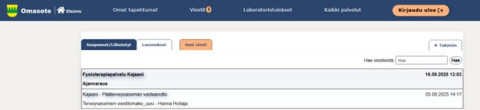 8. Omat viestiyhteydet sisältävät kolme viimeisintä palvelua, mihin olet ollut yhteydessä Omasote- viestillä.