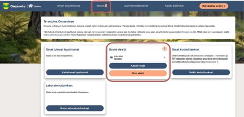 5. Valitse Viestit joko etusivun yläpalkista tai Uusi viesti, Uudet viestit- osiosta.